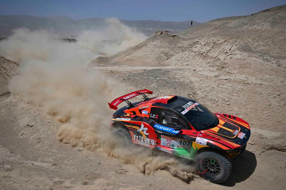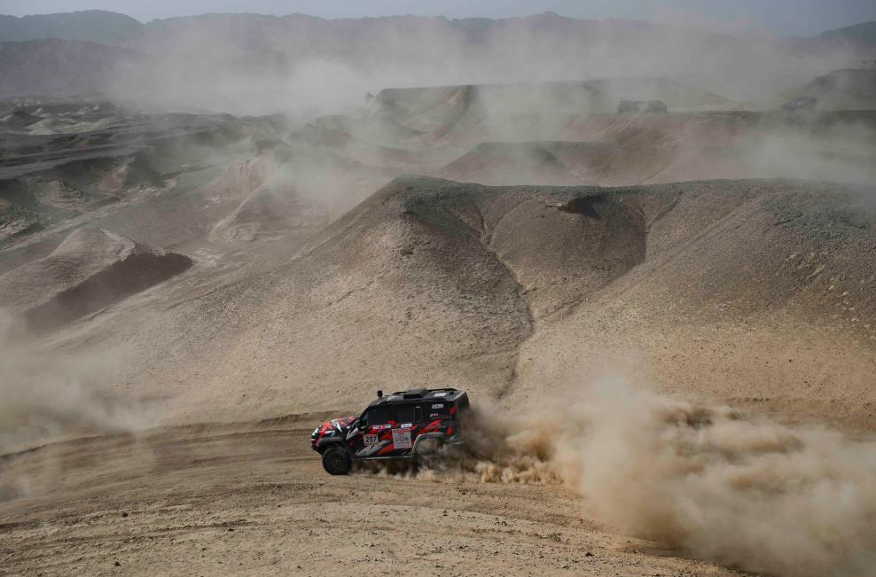 5月20日,龙脉赛车队车手额尼日勒图、领航员贾峻驾驶赛车在排位赛中。