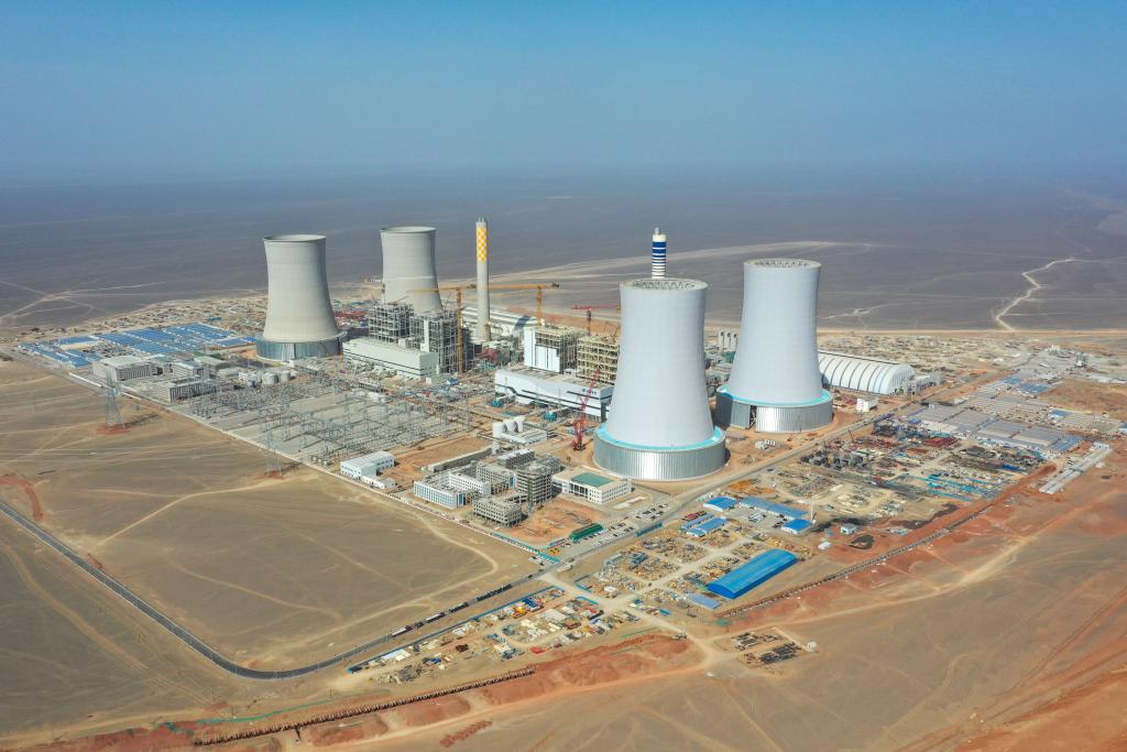 这是在新疆哈密市巴里坤哈萨克自治县拍摄的哈密—重庆±800千伏特高压直流输电工程配套火电厂(3月22日摄,无人机照片)。