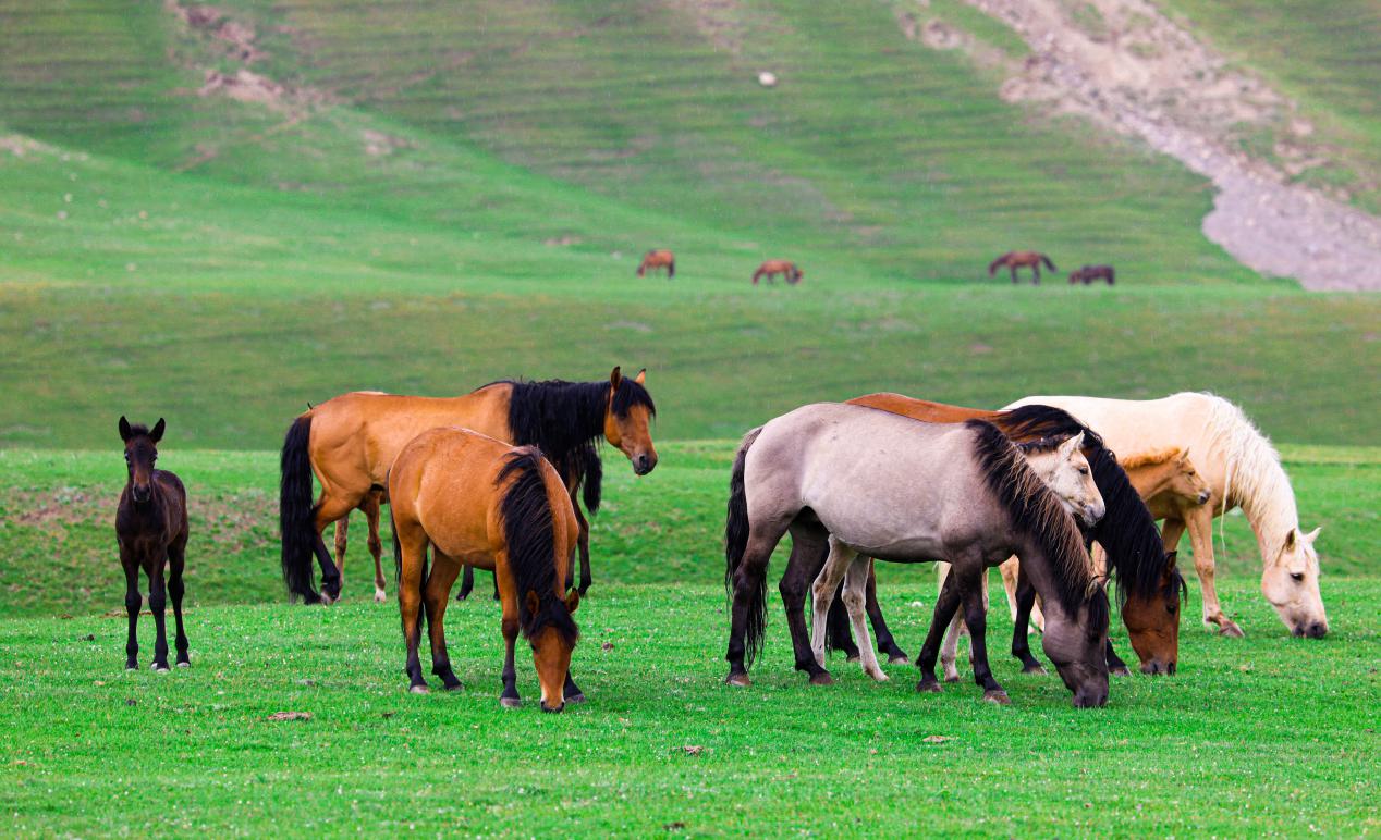 站在海拔3000米的高原牧场极目远眺,湛蓝的天空下,白云如絮,与远处巍峨的雪山交相辉映。广袤的草原上,牧草丰美,野花点缀其间,微风拂过,草浪翻滚,送来阵阵清香。成群的骏马在草地上自由驰骋,牛羊悠闲地漫步觅食,牧民的帐篷星星点点,炊烟袅袅,处处洋溢着浓郁的草原风情。