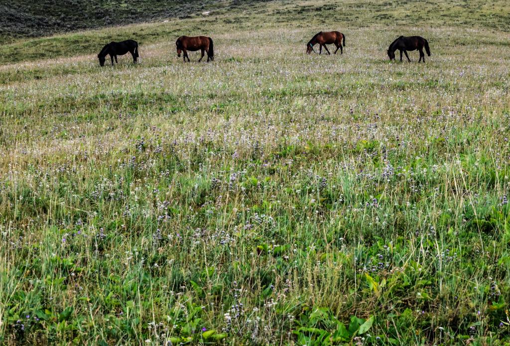 7月29日,牛群在古尔图南山景区悠闲吃草。