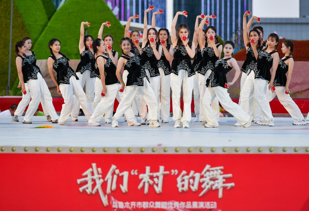 乌鲁木齐市达坂城区舞蹈队在“我们‘村’的舞”乌鲁木齐市群众舞蹈展演活动上表演舞蹈(7月28日摄)。