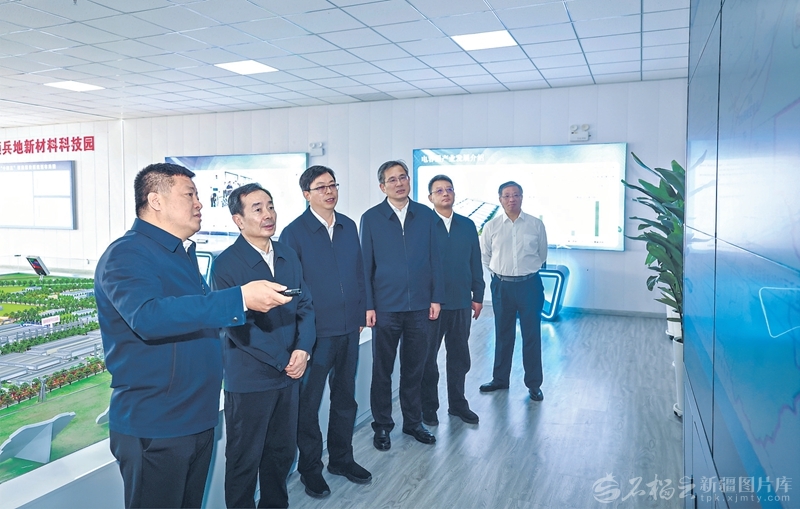 9月9日至10日,自治区党委书记、兵团党委第一书记、第一政委陈小江在塔城地区和兵团第九师白杨市调研。这是9月9日陈小江在新疆塔额兵地新材料科技园,听取园区新能源项目规划和重点项目推进情况介绍。崔志坚 摄
