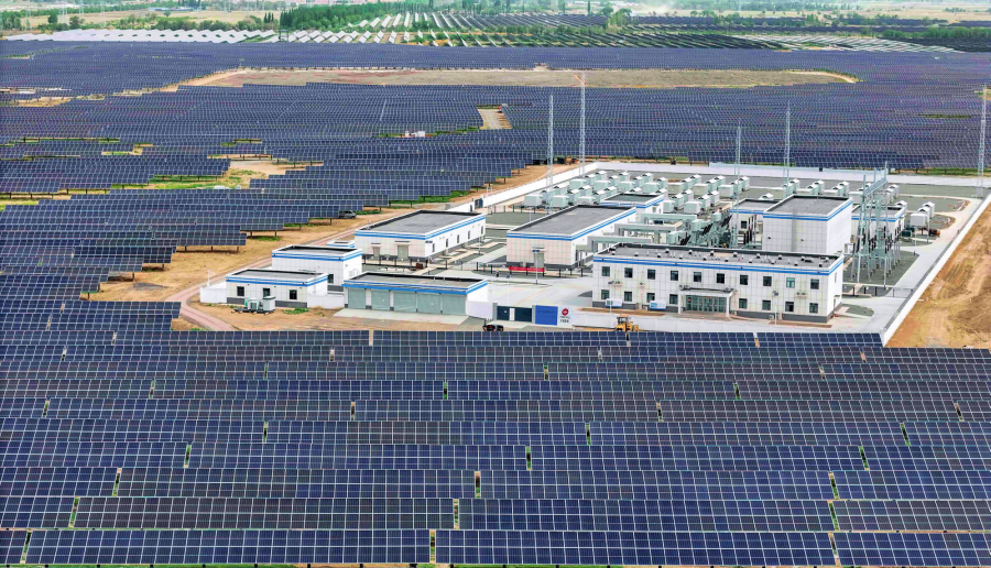 新疆生产建设兵团第八师石河子市的一处100万千瓦光伏基地(2024年5月14日摄)胡虎虎摄/本刊