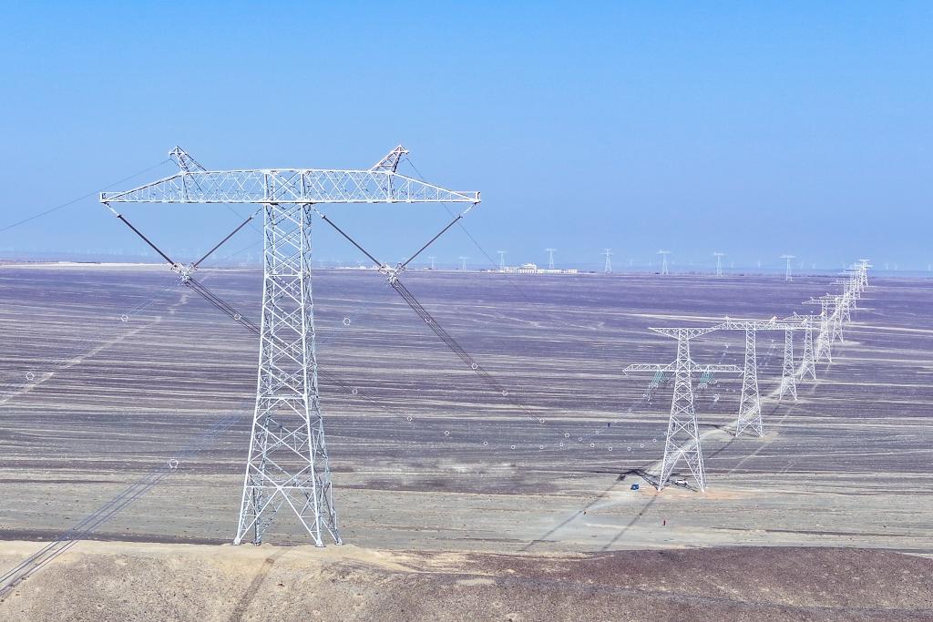 9月22日在新疆巴音郭楞蒙古自治州若羌县拍摄的三峡集团“疆电外送”第四通道电源项目施工现场(无人机照片)。