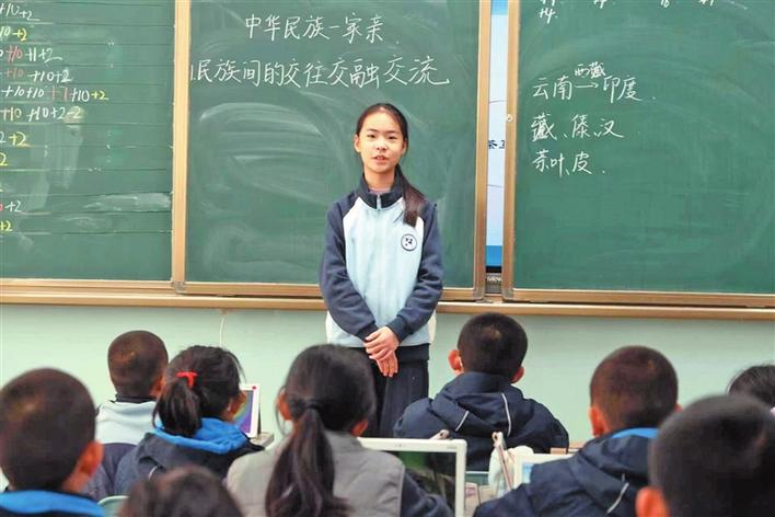 11月25日,贾蕊璐在二师华山中学为同学们讲老兵故事。兵团日报常驻记者 李嘉成 摄