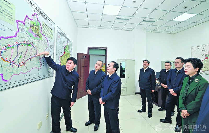 2月5日,自治区党委书记陈小江、自治区主席艾尔肯·吐尼亚孜在自治区水利厅和自治区林草局调研并座谈。这是陈小江、艾尔肯·吐尼亚孜在自治区林草局,深入了解“三北”工程推进情况。□石榴云/新疆日报记者崔志坚摄