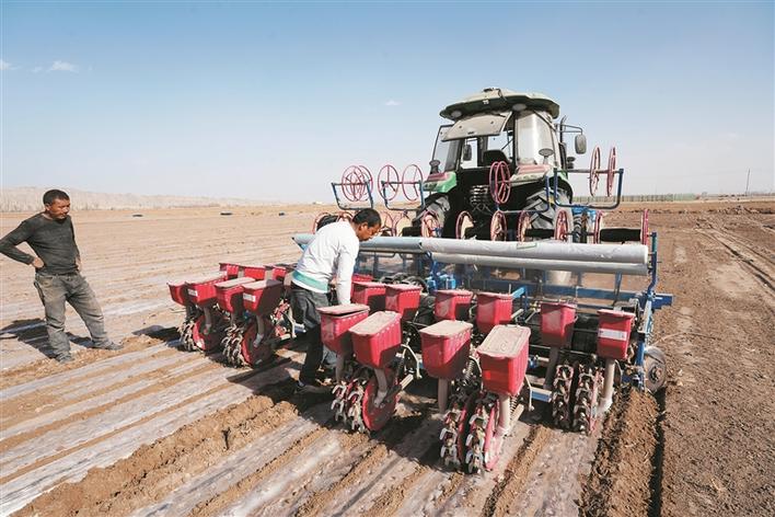 3月25日,三师五十一团种植户利用现代化播种机开展棉花套种小茴香高效种植作业,同步铺设地膜与滴灌带。今年,该团持续推广套种模式,通过应用膜下滴灌技术等,实现节水增效,助力职工群众增产增收。麦麦提依明·艾山 摄